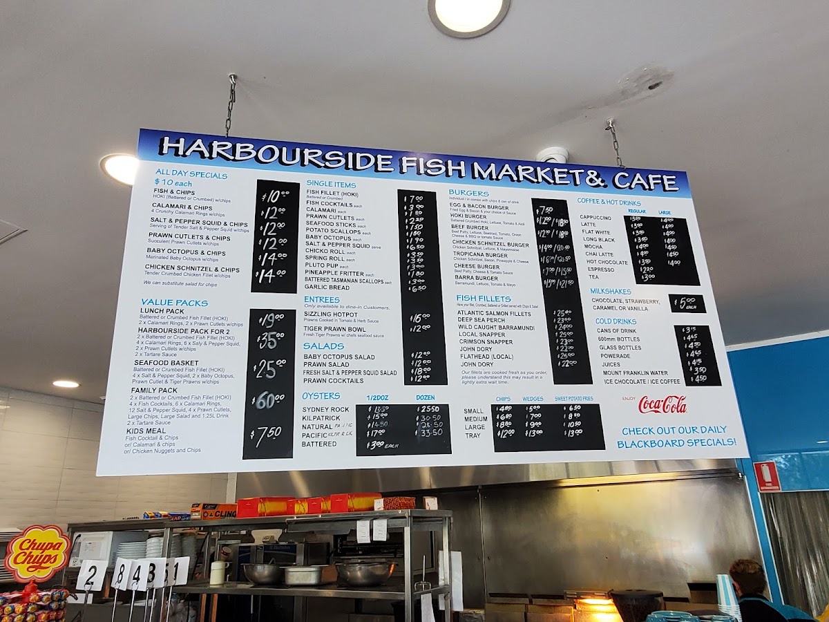 Calamari rings, battered whiting fillets, panko prawns, tartare sauce with chips & your choice of an additional side.