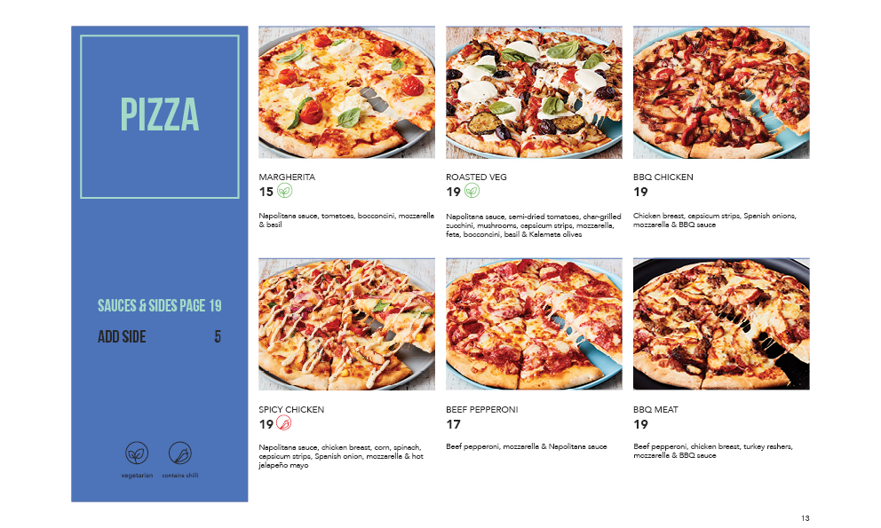 Fettuccine tossed in basil pesto, roasted tomatoes, mushrooms, onions, chilli, spinach, olives, feta & Napolitana sauce.